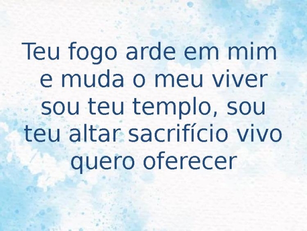 - Teu fogo arde em mim e muda o meu viversou teu templo, sou teu altar sacrifício vivo quero oferecer