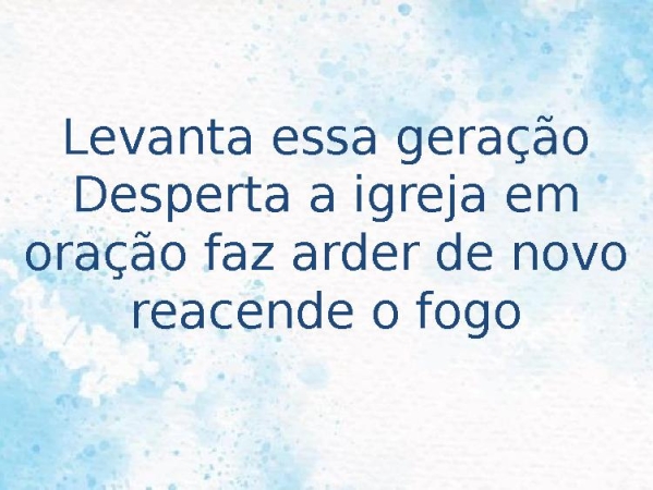 - Levanta essa geraçãoDesperta a igreja em oração faz arder de novoreacende o fogo