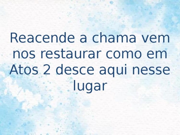 - Reacende a chama vem nos restaurar como em Atos 2 desce aqui nesse lugar