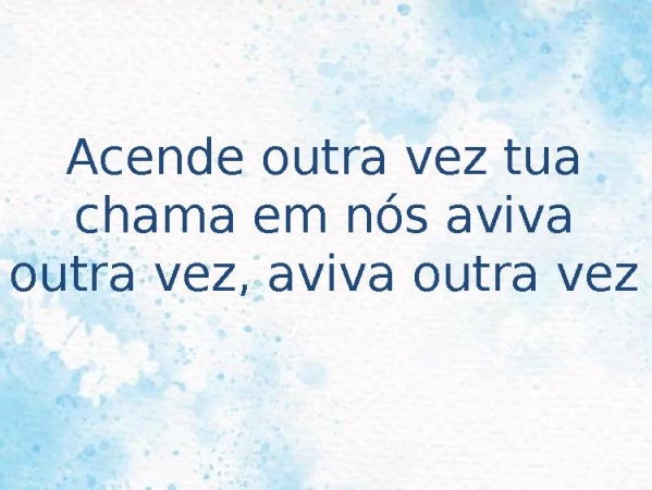 - Acende outra vez tua chama em nós aviva outra vez, aviva outra vez