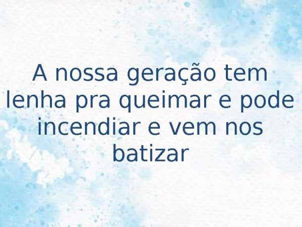 - A nossa geração tem lenha pra queimar e pode incendiar e vem nos batizar