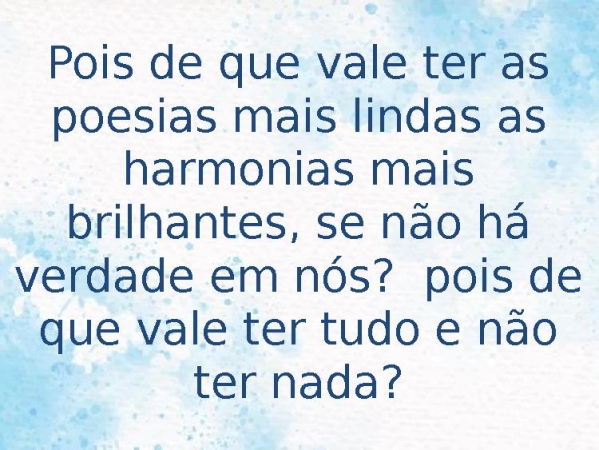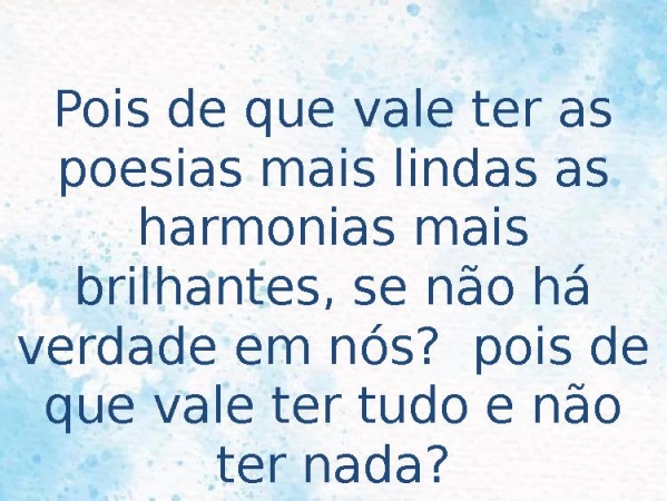 - Pois de que vale ter as poesias mais lindas as harmonias mais brilhantes, se não há verdade em nós? pois de que vale ter tudo e não ter nada?