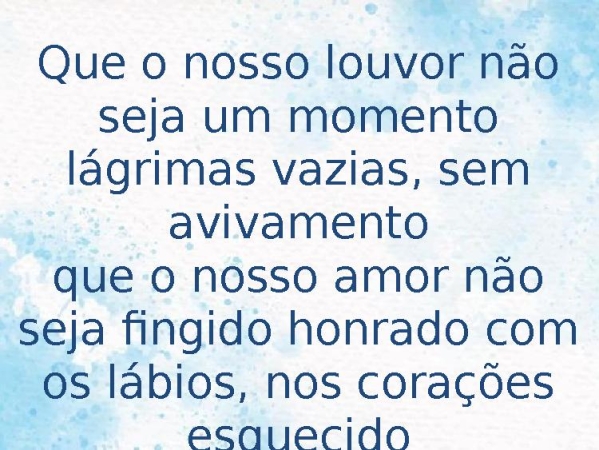 - Que o nosso louvor não seja um momento lágrimas vazias, sem avivamentoque o nosso amor não seja fingido honrado com os lábios, nos corações esquecido