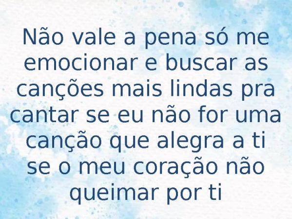 - Não vale a pena só me emocionar e buscar as canções mais lindas pra cantar se eu não for uma canção que alegra a tise o meu coração não queimar por ti