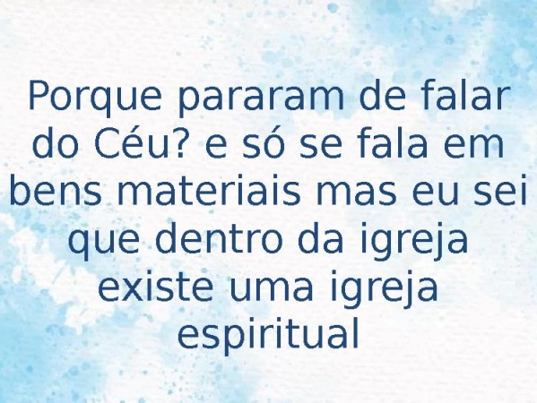 - Porque pararam de falar do Céu? e só se fala em bens materiais mas eu sei que dentro da igreja existe uma igreja espiritual