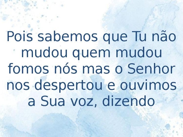 - Pois sabemos que Tu não mudou quem mudou fomos nós mas o Senhor nos despertou e ouvimos a Sua voz, dizendo