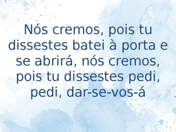 - Nós cremos, pois tu dissestes batei à porta e se abrirá, nós cremos, pois tu dissestes pedi, pedi, dar-se-vos-á