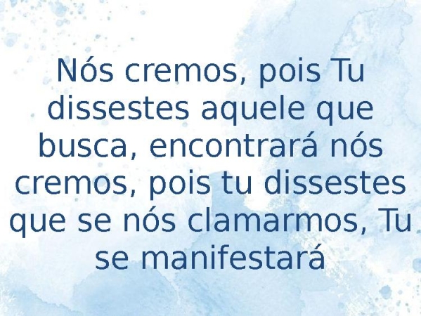 - Nós cremos, pois Tu dissestes aquele que busca, encontrará nós cremos, pois tu dissestes que se nós clamarmos, Tu se manifestará
