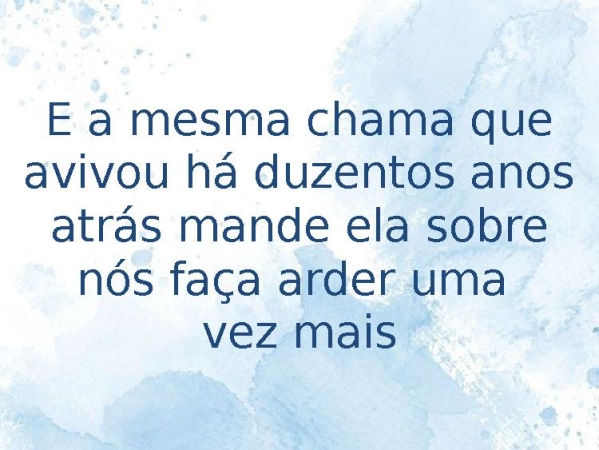 - E a mesma chama que avivou há duzentos anos atrás mande ela sobre nós faça arder uma vez mais