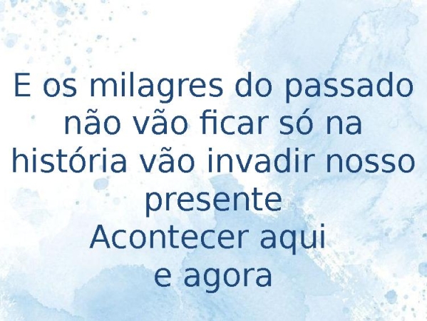 - E os milagres do passado não vão ficar só na história vão invadir nosso presenteAcontecer aqui e agora