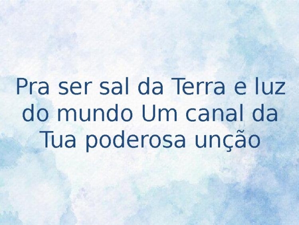 - Pra ser sal da Terra e luz do mundo Um canal da Tua poderosa unção
