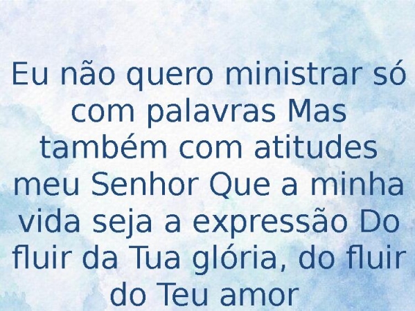 - Eu não quero ministrar só com palavras Mas também com atitudes meu Senhor Que a minha vida seja a expressão Do fluir da Tua glória, do fluir do Teu amor