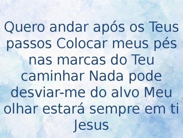 - Quero andar após os Teus passos Colocar meus pés nas marcas do Teu caminhar Nada pode desviar-me do alvo Meu olhar estará sempre em ti Jesus