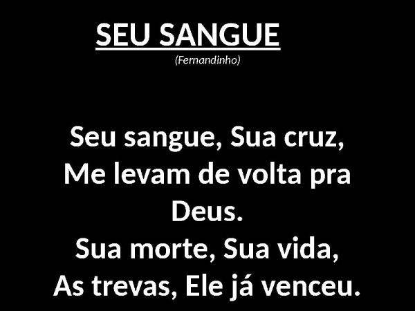- SEU SANGUE (Fernandinho)Seu sangue, Sua cruz,Me levam de volta pra Deus.Sua morte, Sua vida,As trevas, Ele já venceu.