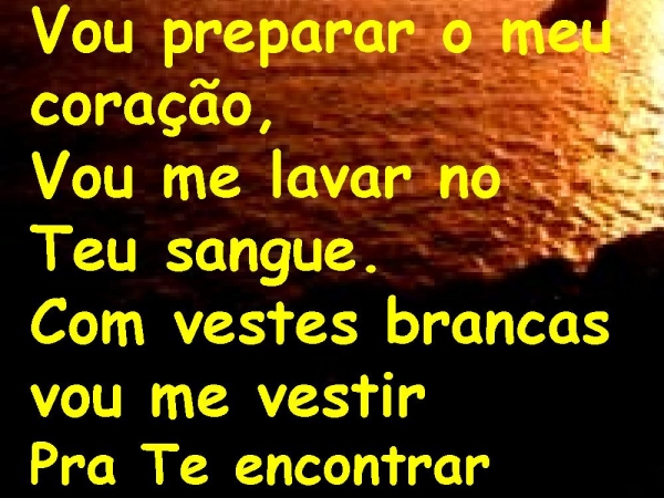 - Vou preparar o meu coração,Vou me lavar no Teu sangue.Com vestes brancas vou me vestirPra Te encontrar