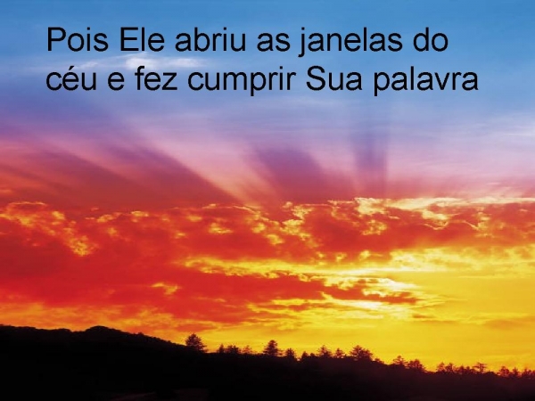 - Pois Ele abriu as janelas do céu, e fez cumprir sua palavraPois Ele abriu as janelas do céu e fez cumprir Sua palavra