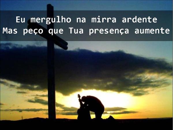 - Eu mergulho na mirra ardenteMas peço que Tua presença aumente