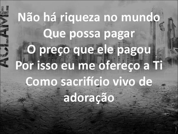 - Não há riqueza no mundoQue possa pagarO preço que ele pagouPor isso eu me ofereço a TiComo sacrifício vivo de adoração