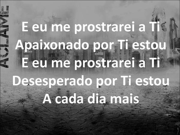 - E eu me prostrarei a TiApaixonado por Ti estouE eu me prostrarei a TiDesesperado por Ti estouA cada dia mais