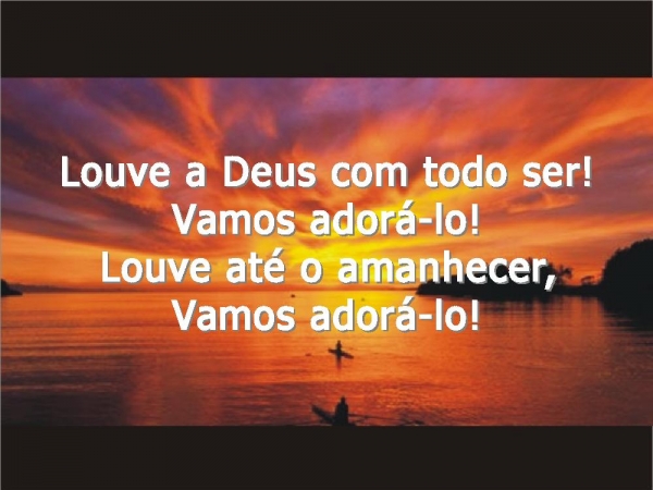 - Louve a Deus com todo ser!Vamos adorá-lo!Louve até o amanhecer,Vamos adorá-lo!