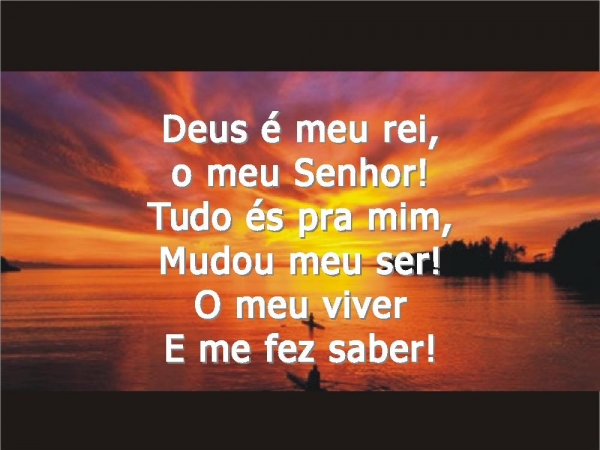- Deus é meu rei,o meu Senhor!Tudo és pra mim,Mudou meu ser!O meu viverE me fez saber!