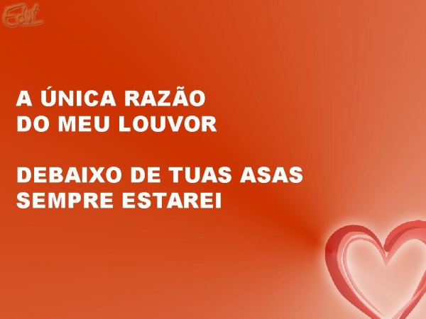 - A ÚNICA RAZÃODO MEU LOUVOR DEBAIXO DE TUAS ASAS SEMPRE ESTAREI