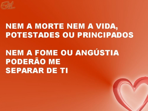 - NEM A MORTE NEM A VIDA, POTESTADES OU PRINCIPADOS NEM A FOME OU ANGÚSTIA PODERÃO ME SEPARAR DE TI