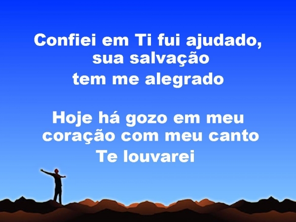 - Confiei em Ti fui ajudado, sua salvação tem me alegradoHoje há gozo em meu coração com meu canto Te louvarei