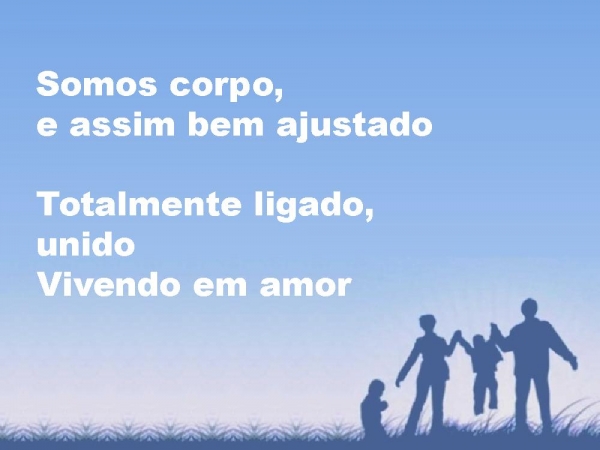 - Somos corpo, e assim bem ajustado Totalmente ligado, unidoVivendo em amor