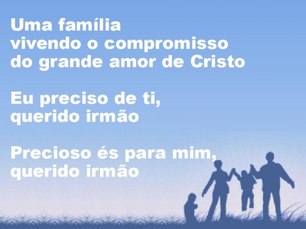 - Uma família vivendo o compromissodo grande amor de Cristo Eu preciso de ti, querido irmão Precioso és para mim, querido irmão