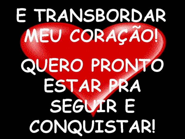 - E TRANSBORDAR MEU CORAÇÃO!QUERO PRONTO ESTAR PRA SEGUIR E CONQUISTAR!
