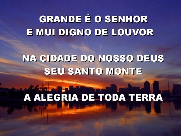- GRANDE É O SENHOR E MUI DIGNO DE LOUVOR NA CIDADE DO NOSSO DEUS SEU SANTO MONTE A ALEGRIA DE TODA TERRA