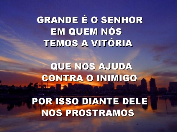 - GRANDE É O SENHOR EM QUEM NÓS TEMOS A VITÓRIA QUE NOS AJUDA CONTRA O INIMIGO POR ISSO DIANTE DELE NOS PROSTRAMOS