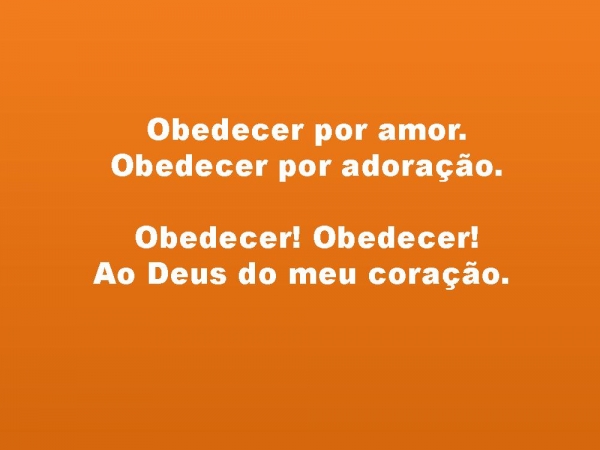 - Obedecer por amor.Obedecer por adoração.Obedecer! Obedecer!Ao Deus do meu coração.