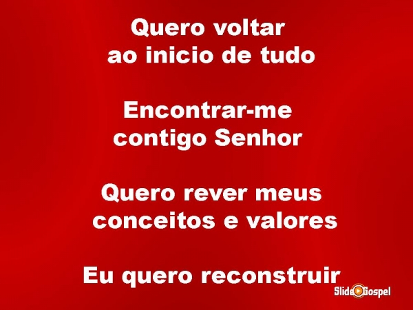 - Quero voltar ao inicio de tudo Encontrar-me contigo Senhor Quero rever meus conceitos e valores Eu quero reconstruir