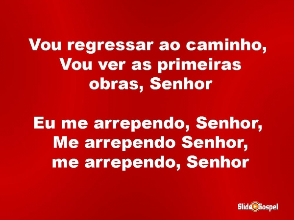 - Vou regressar ao caminho, Vou ver as primeiras obras, Senhor Eu me arrependo, Senhor, Me arrependo Senhor,me arrependo, Senhor