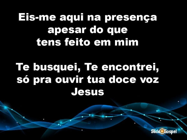 - Eis-me aqui na presençaapesar do quetens feito em mimTe busquei, Te encontrei,só pra ouvir tua doce voz Jesus
