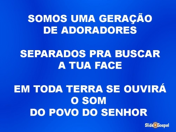 - SOMOS UMA GERAÇÃO DE ADORADORES SEPARADOS PRA BUSCAR A TUA FACE EM TODA TERRA SE OUVIRÁ O SOM DO POVO DO SENHOR