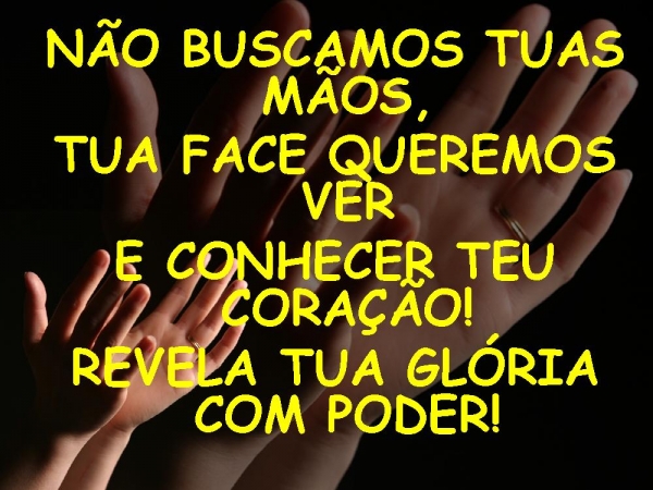 - NÃO BUSCAMOS TUAS MÃOS,TUA FACE QUEREMOS VERE CONHECER TEU CORAÇÃO!REVELA TUA GLÓRIA COM PODER!