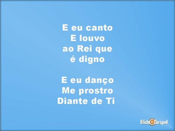 - E eu cantoE louvo ao Rei que é dignoE eu dançoMe prostroDiante de Ti