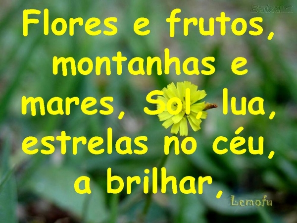 - Flores e frutos, montanhas e mares, Sol, lua, estrelas no céu, a brilhar,