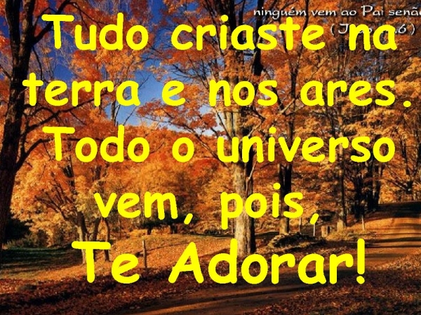 - Tudo criaste na terra e nos ares.Todo o universo vem, pois, Te Adorar!