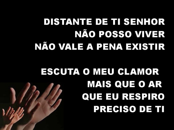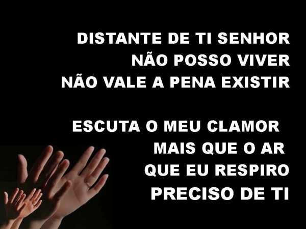 - DISTANTE DE TI SENHOR NÃO POSSO VIVERNÃO VALE A PENA EXISTIRESCUTA O MEU CLAMOR MAIS QUE O AR QUE EU RESPIROPRECISO DE TI