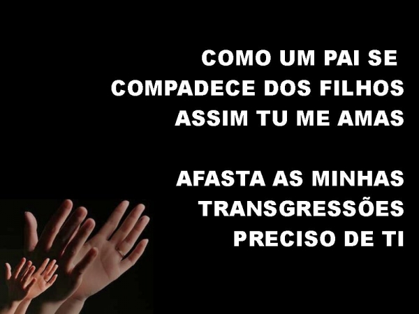 - COMO UM PAI SE COMPADECE DOS FILHOSASSIM TU ME AMASAFASTA AS MINHAS TRANSGRESSÕESPRECISO DE TI