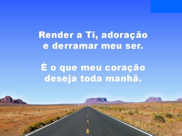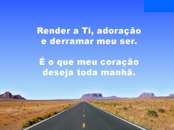 - Render a Ti, adoraçãoe derramar meu ser.É o que meu coraçãodeseja toda manhã.