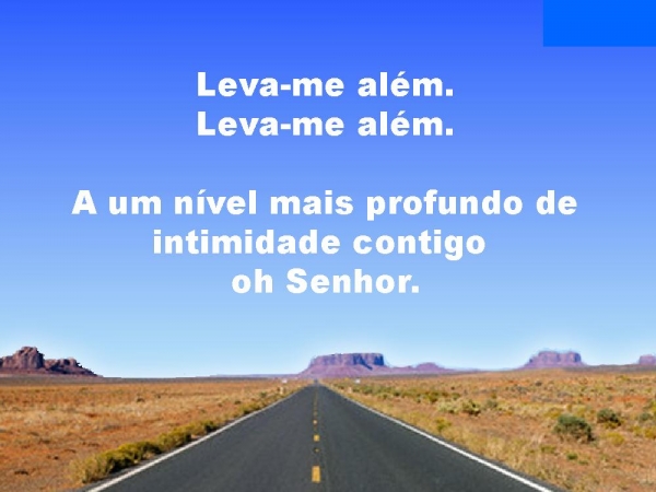 - Leva-me além.Leva-me além.A um nível mais profundo de intimidade contigo oh Senhor.
