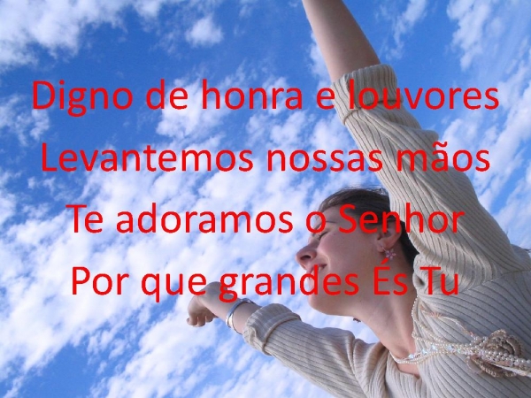 - Digno de honra e louvoresLevantemos nossas mãosTe adoramos o SenhorPor que grandes És Tu