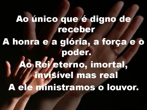 - Ao único que é digno de receberA honra e a glória, a força e o poder.Ao Rei eterno, imortal, invisível mas realA ele ministramos o louvor.