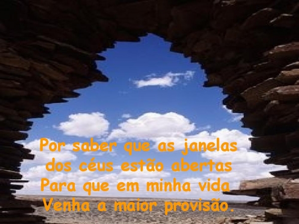 - Por saber que as janelas dos céus estão abertasPara que em minha vida Venha a maior provisão.