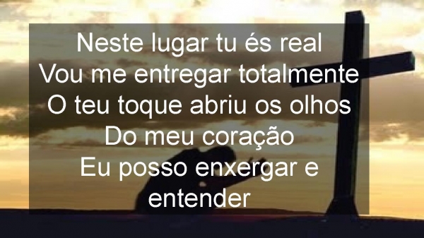 - Neste lugar tu és realVou me entregar totalmenteO teu toque abriu os olhosDo meu coraçãoEu posso enxergar e entender